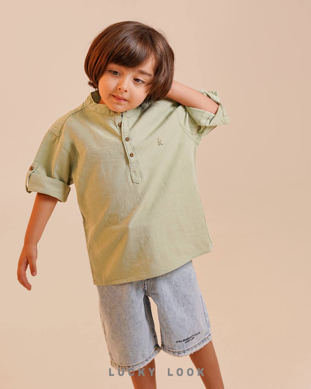آستین سه ربع که با دکمه آستین کوتاه میشه پیراهن یقه دیپلمات ترک عیدانه LUCKY LOOK
